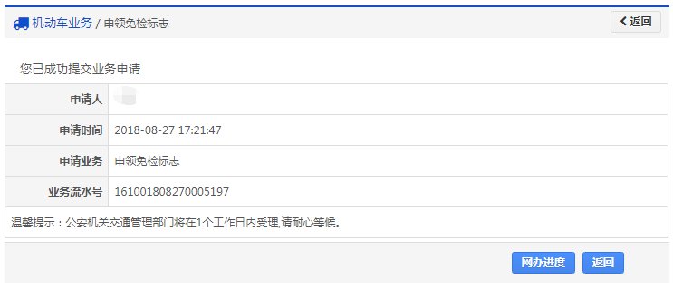 该步骤提交成功后,系统生成业务流水号。该步骤提交成功后,系统将于提交后的一个工作日(不含当天)受理(选择在线支付的业务费用支付完成后受理),届时会发送短信告知受理结果。用户可以根据该业务流水号在网办进度中查询业务办理进度。