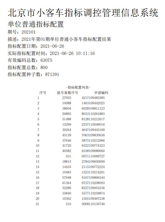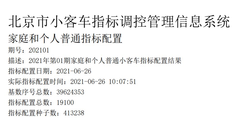 ➤2021年第1期北京小客车家庭和个人普通指标配置结果