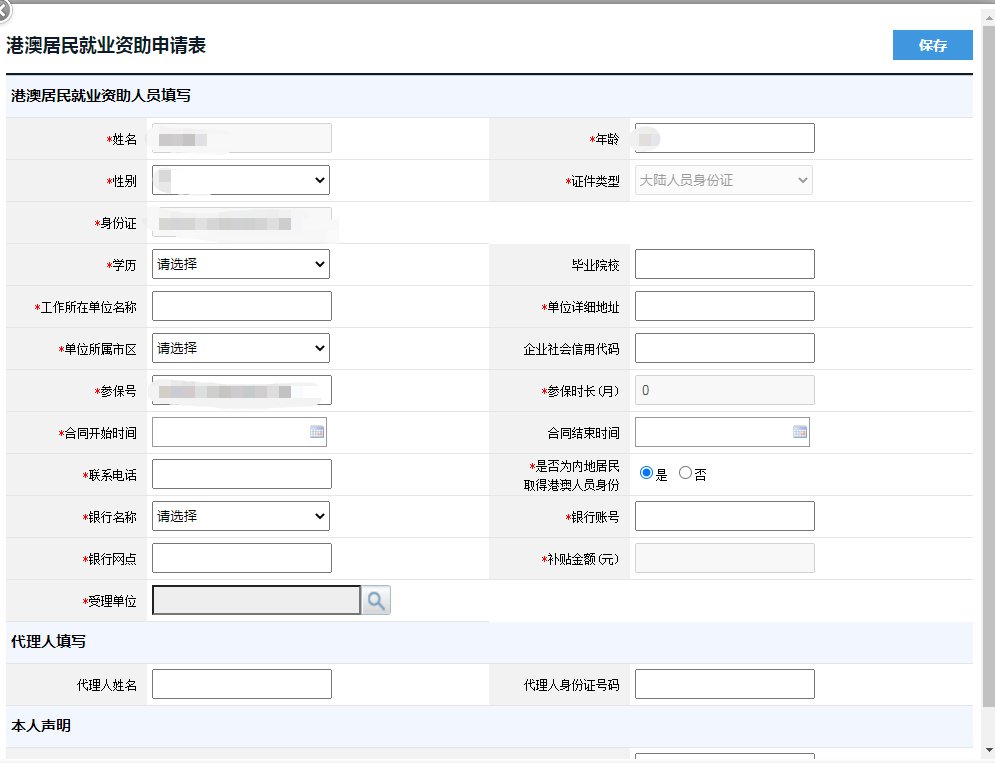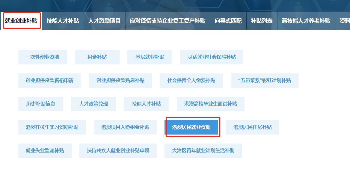 第四步:选择相应的补贴项目:在平台上找到【港澳居民就业有资助】,然后点击【申请补贴】;