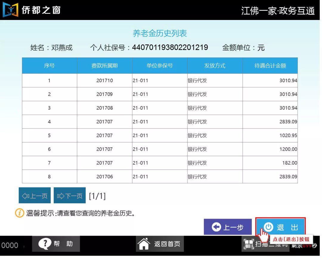 “侨都之窗”查询养老金历史操作流程