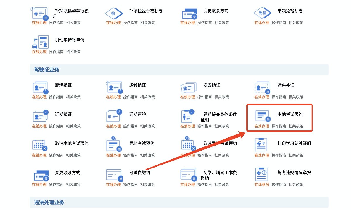 进入后选择本地考试预约,点击【在现办理】在跳转页面输入信息登陆即可开始预约。