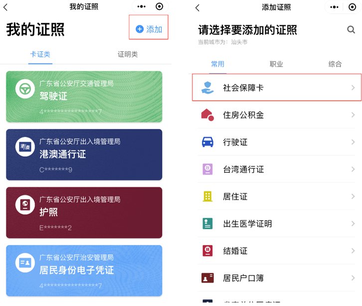 第二步:登录后,进入“我的证照”,关联汕头市社保卡。