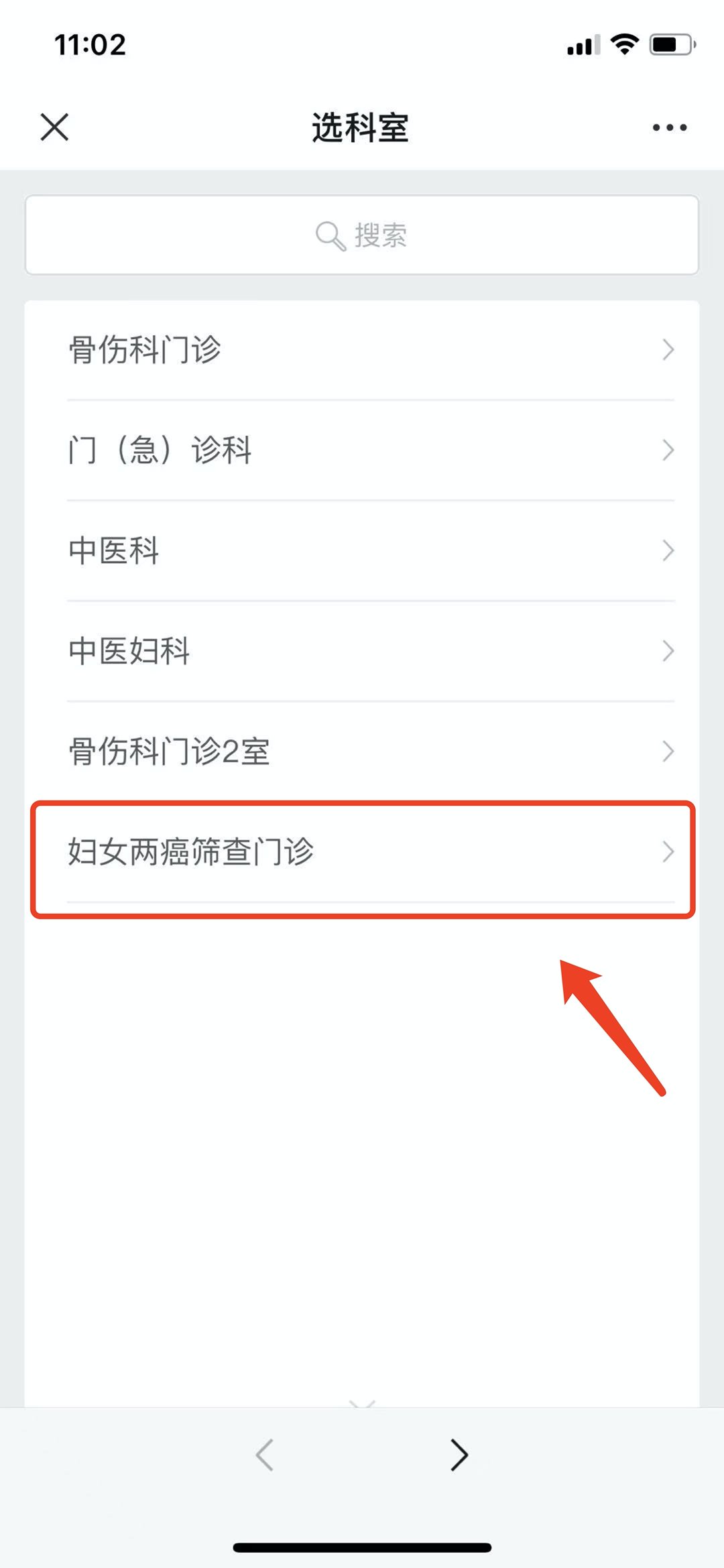 3.选择妇女两癌筛查门诊。