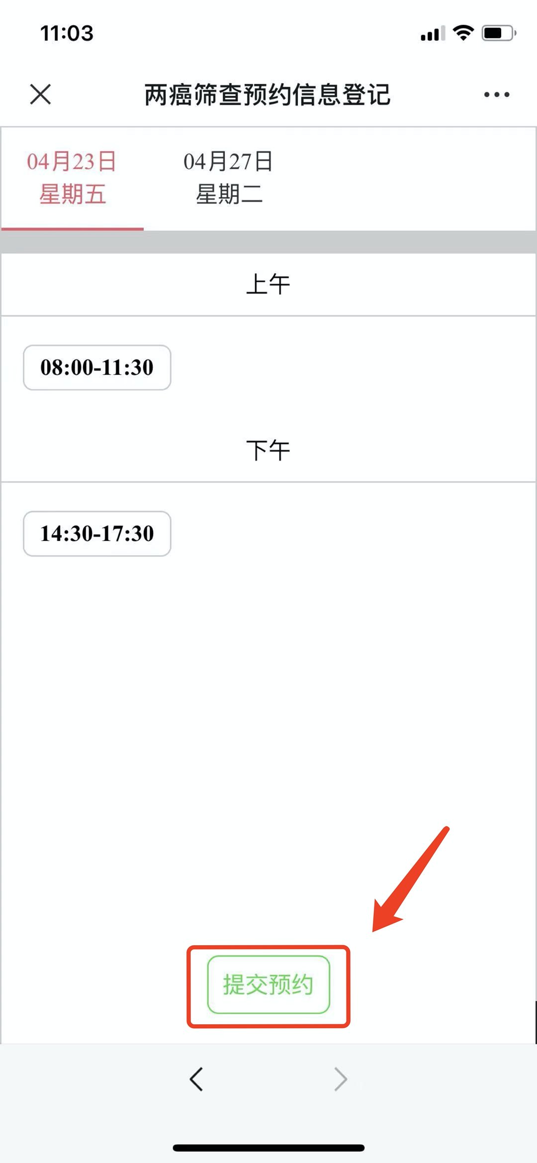5.选择合适的时间提交预约即可。