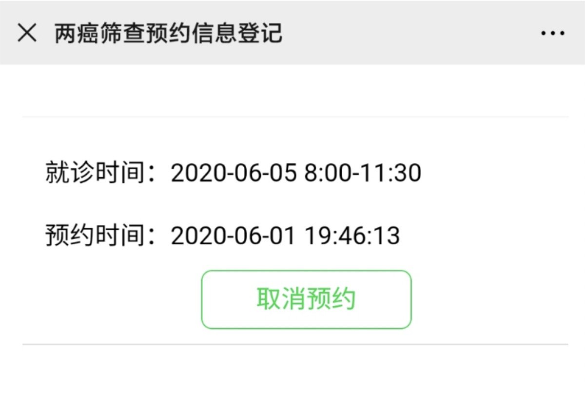 温馨提示:如果提前预约成功,但临时有事可以点击“取消预约”,重新选择下次预约检查时间。