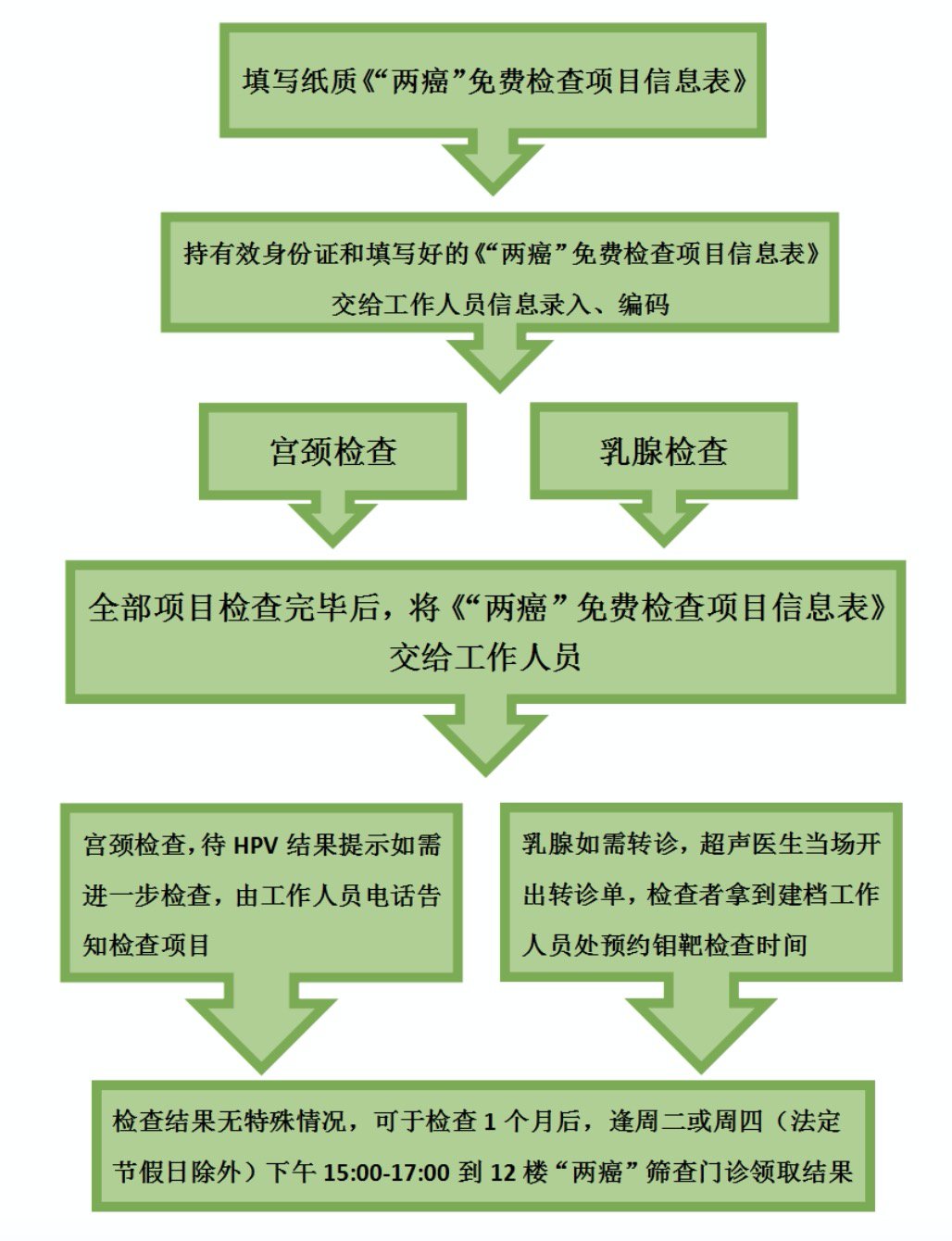 “两癌”筛查指引流程如下: