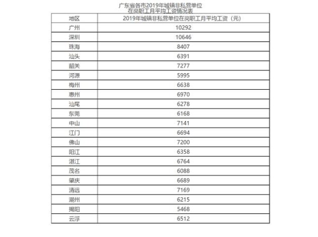 附件:广东省各市2019年城镇非私营单位在岗职工月平均工资情况表