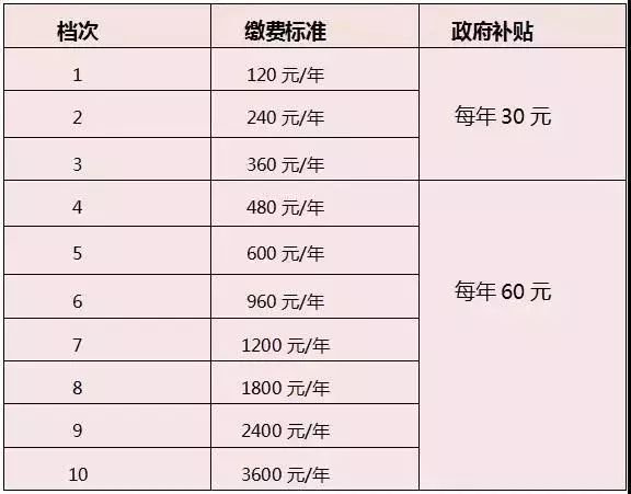 缴费标准主要有以下十档: