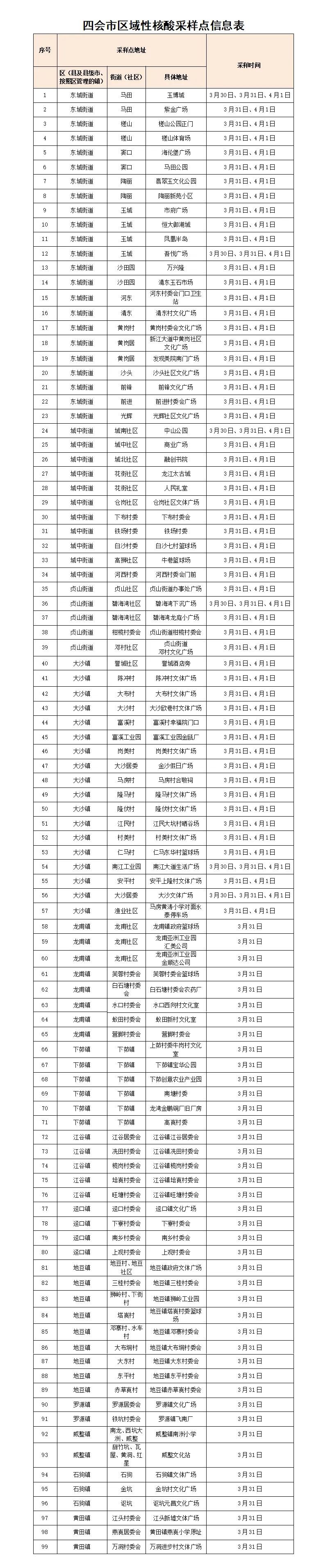 城区(含大沙):2022年3月30至4月1日(每天09:00--21:00)(详情附表)