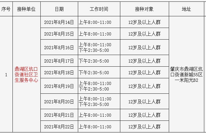 接种地址:肇庆市鼎湖区坑口街道新城55区一米阳光B2