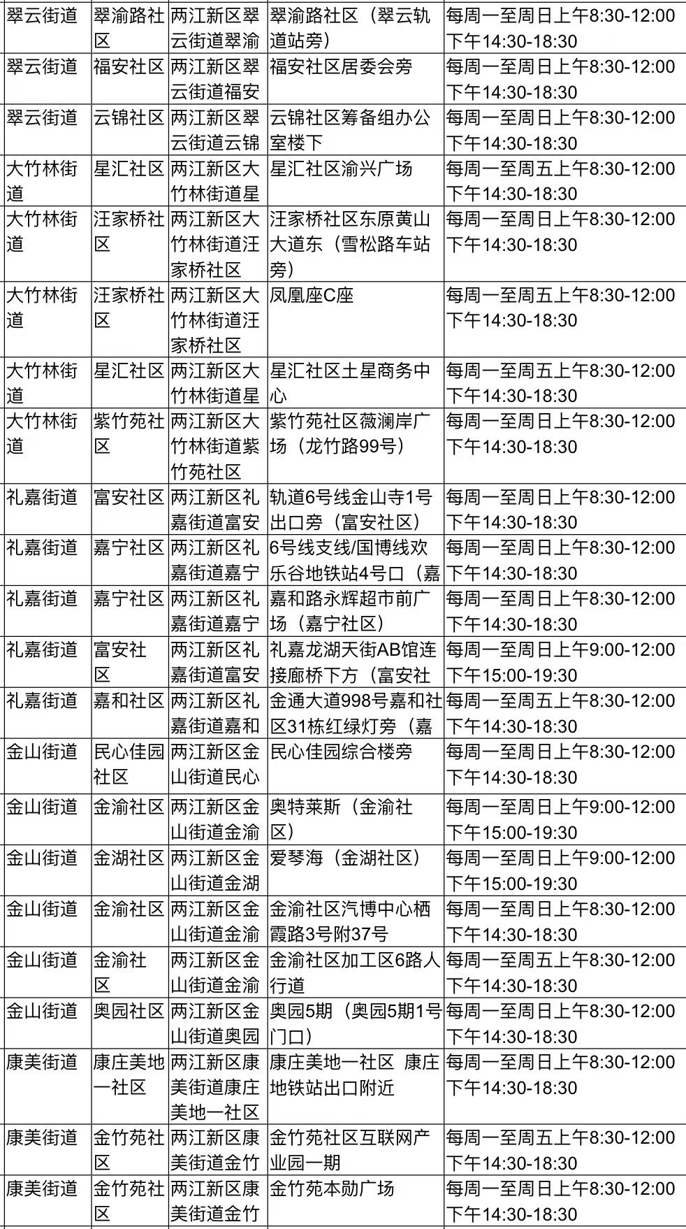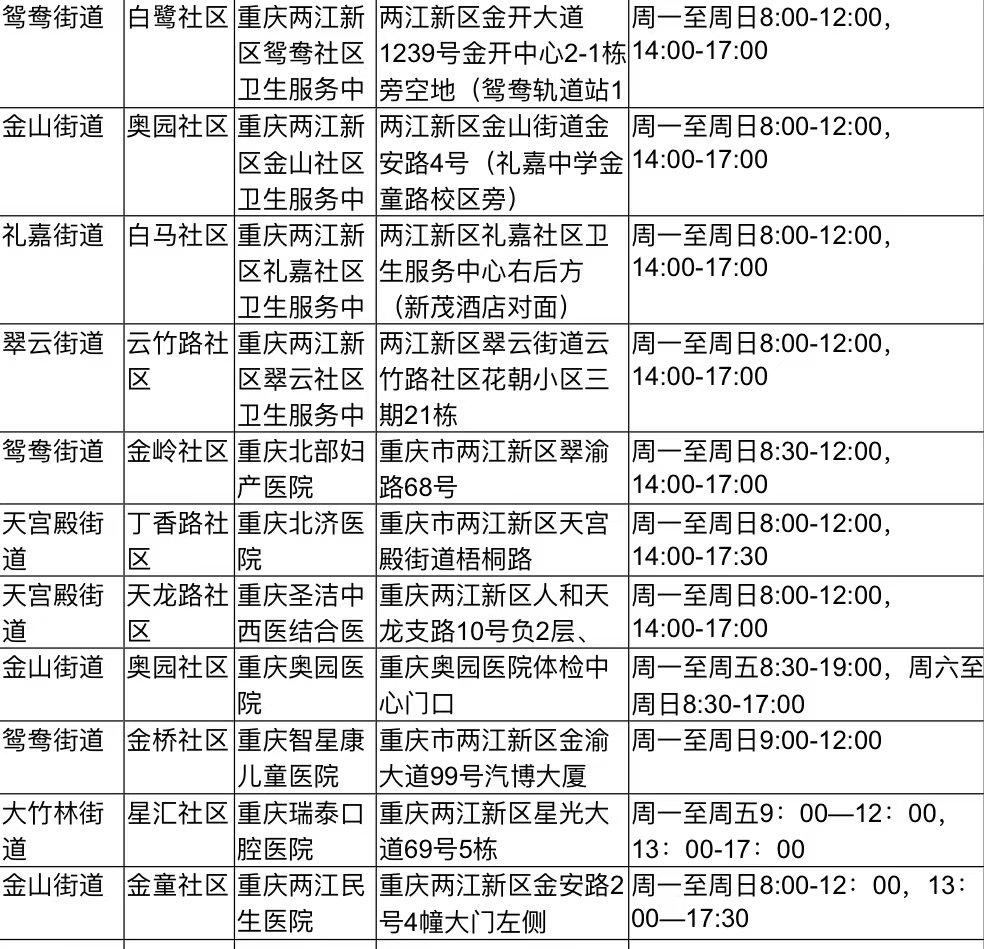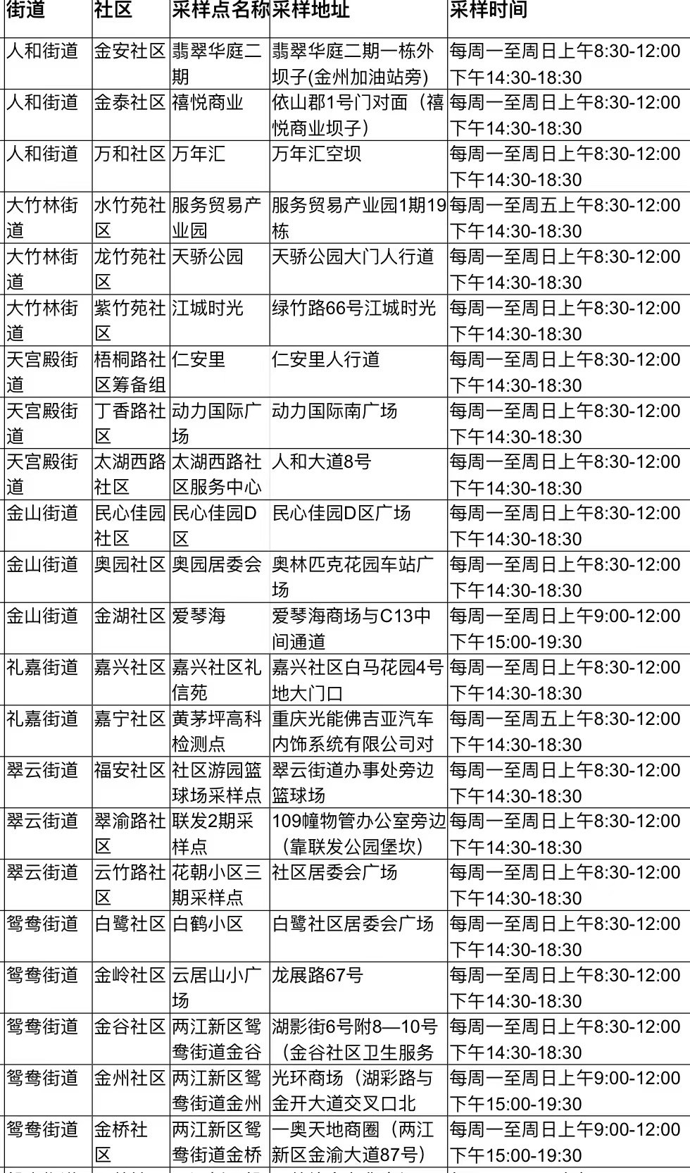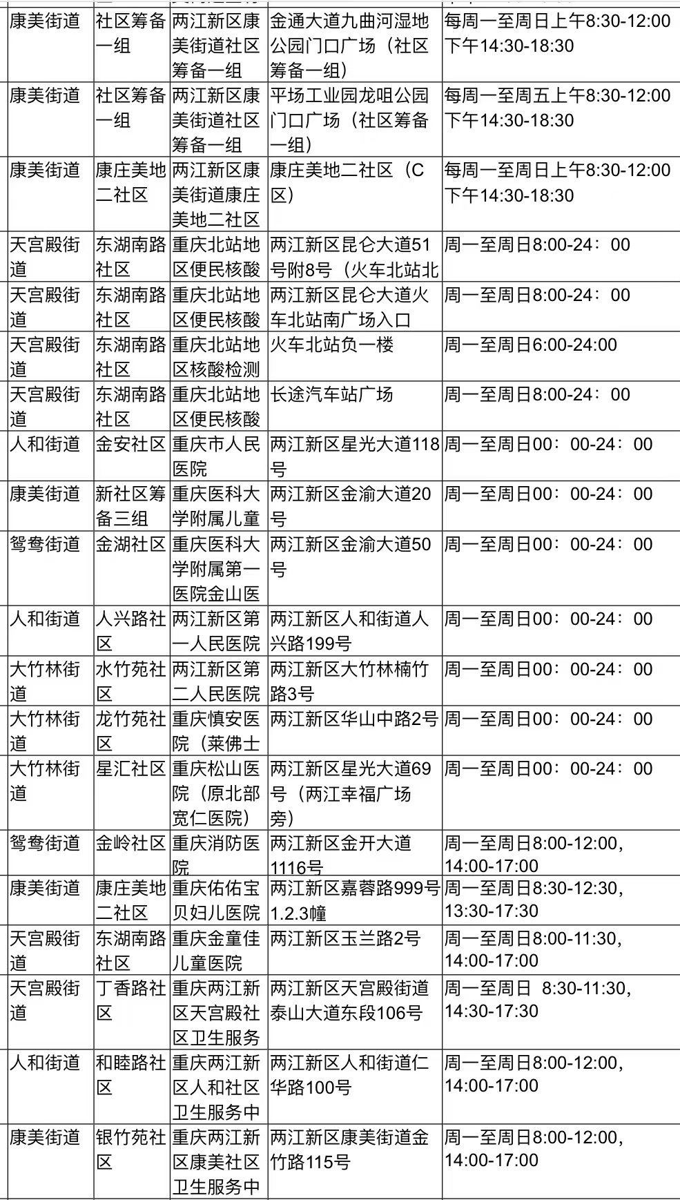 重庆9月两江新区常态化检测采样点(地点+工作时间)