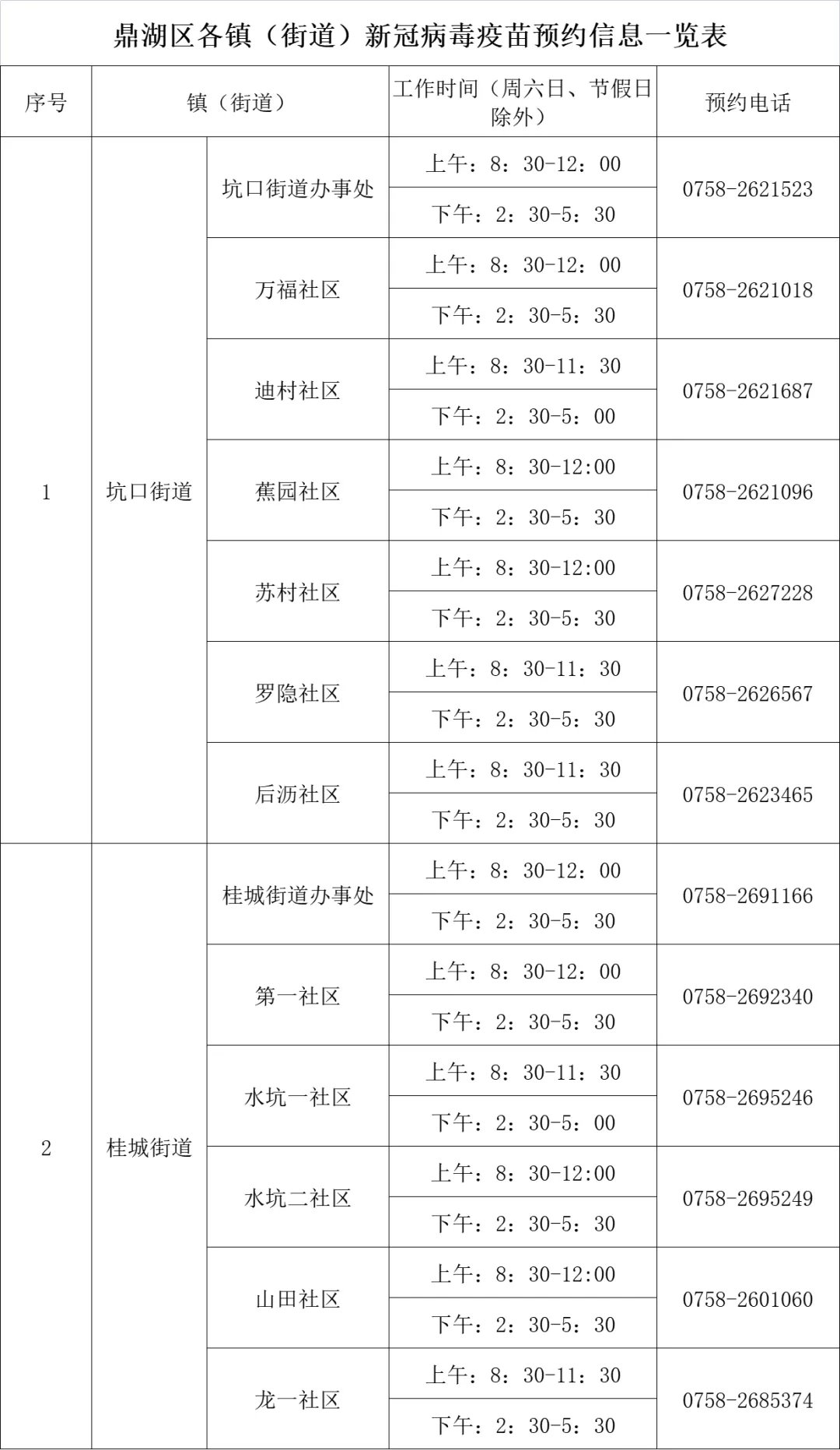 二、鼎湖区街道村电话预约(备注:以下地址电话仅供预约)