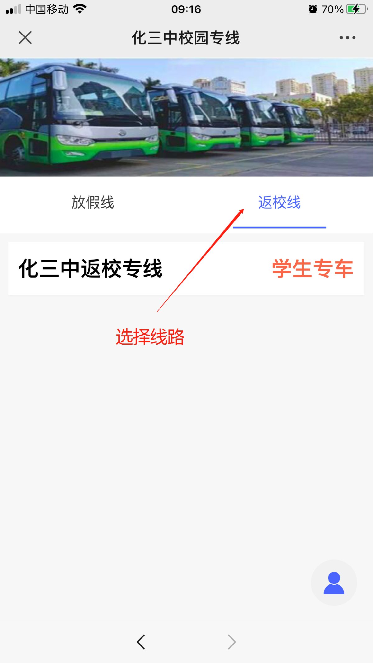 4、选择乘车线路(确认放假线/返校线)