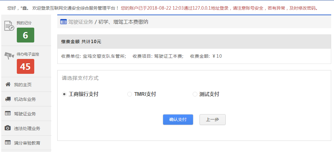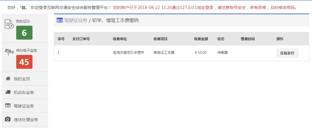(2)支付失败的驾驶证工本费记录在该步骤也会显示。