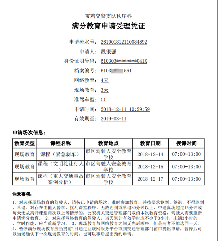 (2)申请成功后,参加教育有效期3个月,可以通过窗口提出1次延期申请,申请后延期3个月。有效期内未完成教育的,教育记录作废,需重新申请满分教育。