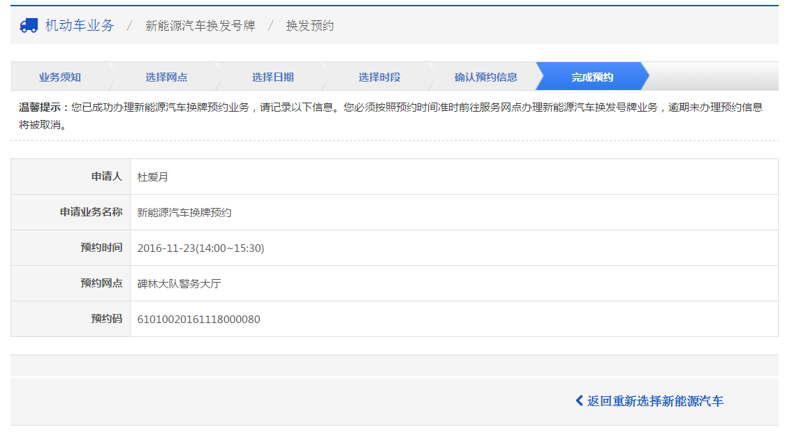在该步骤,界面会显示换牌预约的办理情况。