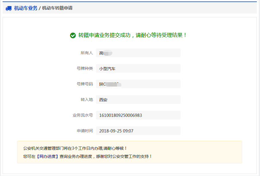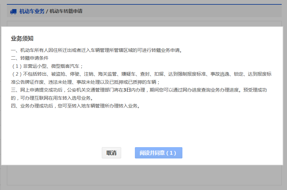 1 、机动车转籍申请(所有人不变)流程