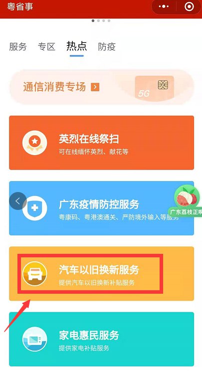 1、第一步:查询车型及供销商名单补贴对象通过“粤省事"小程序“汽车以日换新”栏目查询“广东省2021年汽车以日换新推广车型和参与汽车以旧换新的经销商名单