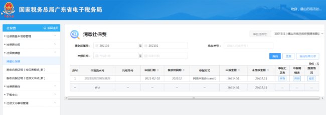 (1)点击菜单【清缴社保费】模块功能,进入清缴社保费界面;系统自动带出单位当前费款所属期的社保费欠费信息(显示在查询结果列表);