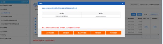 点击【三方协议缴款】弹出“三方协议缴款”窗口,确认扣款的银行账号和缴款信息无误后,点击【扣款】按钮,系统根据签约银行账号自行扣款;