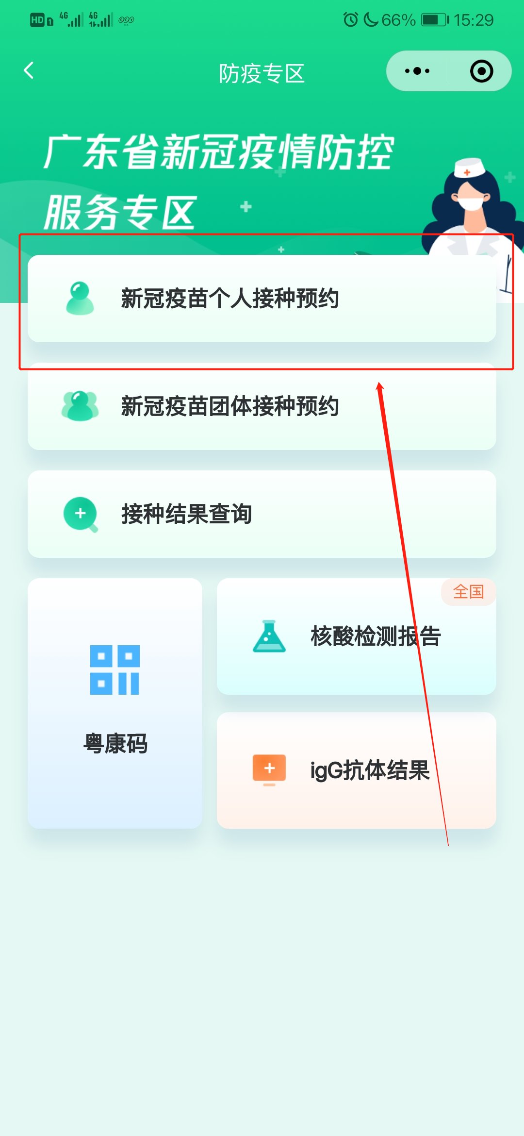 3.第三步:在此点击“新冠疫苗个人接种预约”进行人脸识别登录;