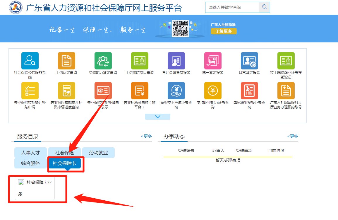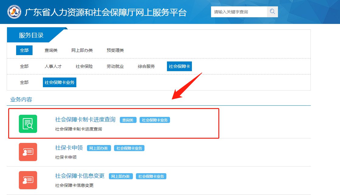 第一步:【服务目录】——【社会保障卡】——【社会保障卡业务】