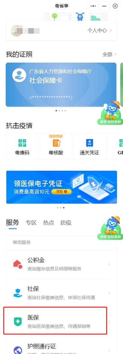 1.在微信上搜索小程序“粤省事” → “医保”。