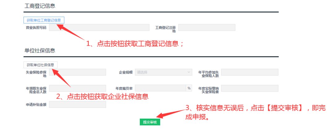 (1)若获取工商或社保信息失败,不允许提交。