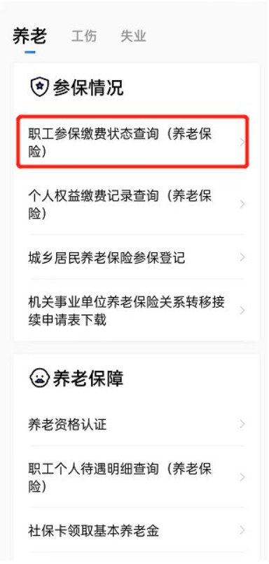 在“参保情况”一栏下选择“职工参保缴费状态查询(养老保险)”。