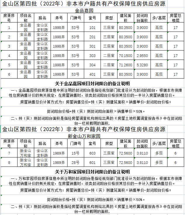 根据上海市共有产权保障住房的有关规定,现将金山区第四批(2022年)非本市户籍共有产权保障住房房源公示如下