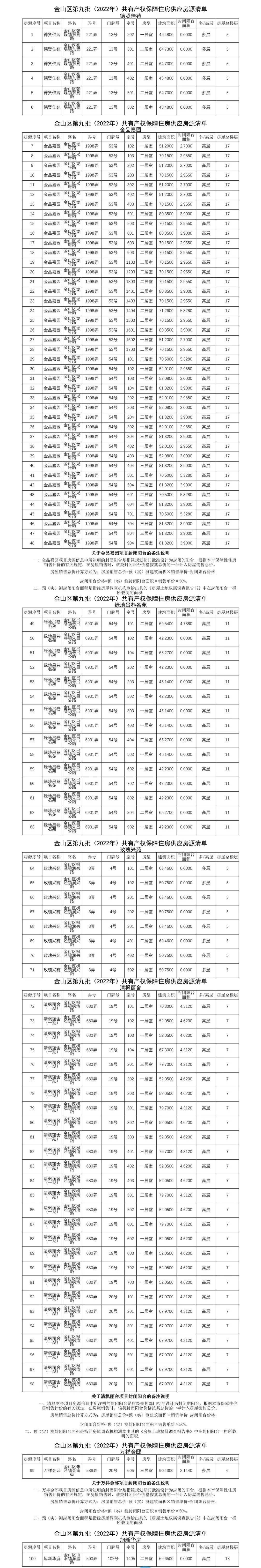 金山区第九批次(2022年)共有产权保障住房房源公示