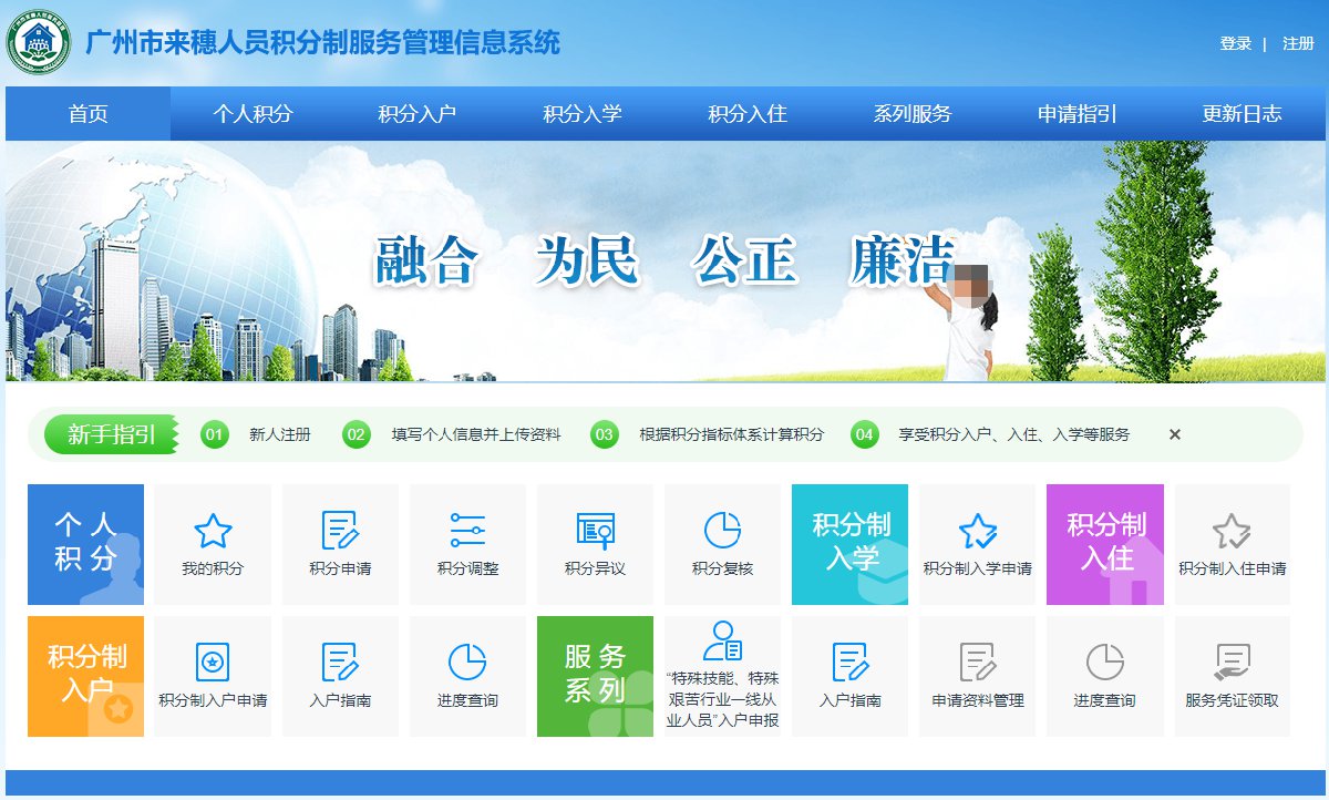 申请人通过登录广州市来穗人员积分制服务管理信息系统填写个人信息,上传本人积分材料,提出积分申请。