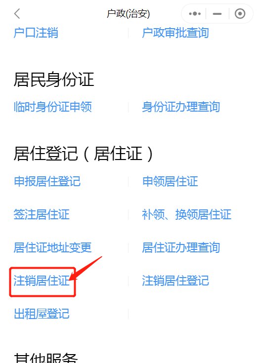2.下拉找到“注销居住证”点击进入