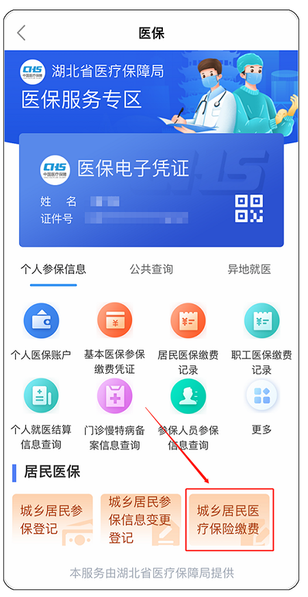 2、第二步:找到居民医保板块,点击“城乡居民医疗保险缴费”;