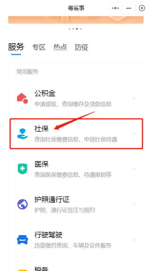 1.进入粤省事小程序后,下拉找到“社保”
