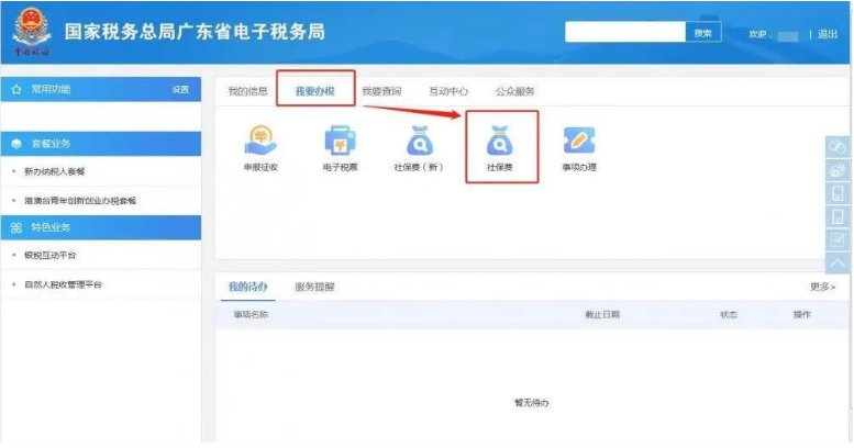(2)在“我要办税”功能模块下,点击“社保费”。