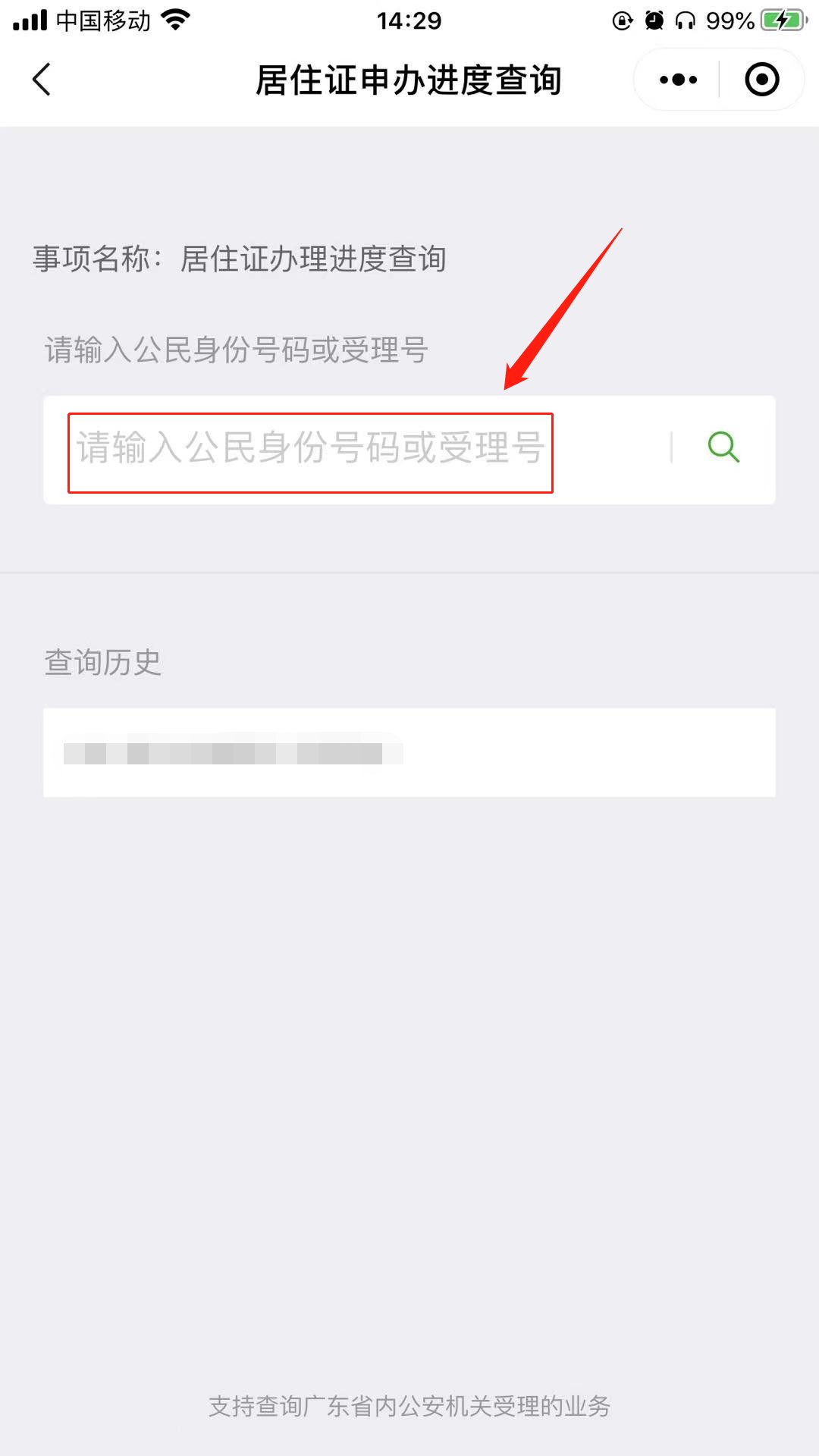 3、输入身份证号或受理号即可查询。