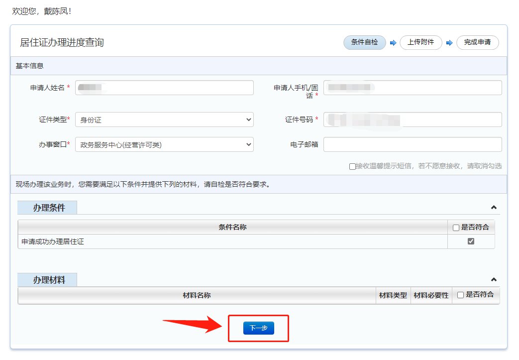 1、打开广东政务服务网,确认个人信息无误,勾选“申请成功办理居住证”,点击下一步;