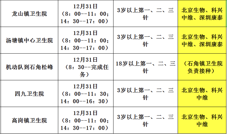 12月31日,佛冈县开放新冠病毒疫苗接种门诊有: