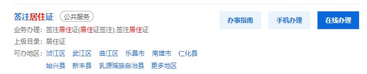 3、在下方找到“签注居住证”一栏,点击“在线办理”;