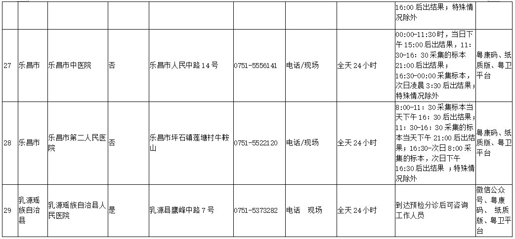 根据韶关发布的最新韶关市核酸检测机构,韶关目前共有29家医院可以进行核酸检测,医院名称、机构类别及咨询电话如下: