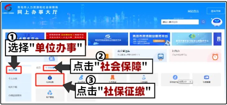参保单位可登录青岛市人社局官网(http://hrss.qingdao.gov.cn)进行在线申报,单位人数50人以下的使用“年度缴费基数申报”模块直接申报,50人以上的使用“年度缴费基数导入”模块申报。