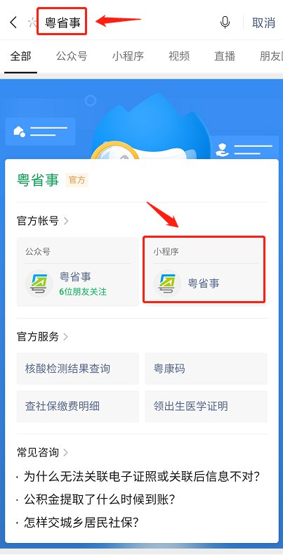 微信搜索【粤省事】,点击进入“粤省事”小程序。