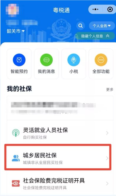 在“粤税通”小程序实名认证登录后,在首页点击【城乡居民社保】。