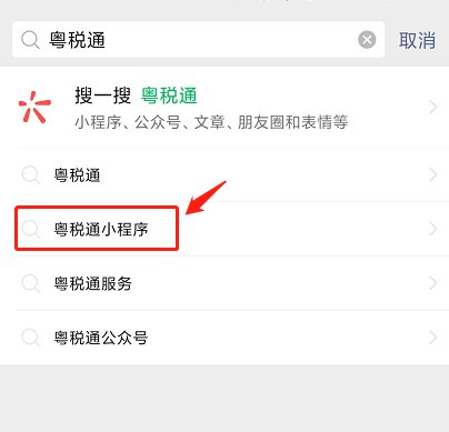 首先,微信搜索【粤税通】,进入“粤税通”小程序。