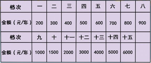 个人缴费标准从200元到6000元,共15个档次。参保人每年选定缴费档次,按年度缴纳,可与金融机构签订个人委托扣款缴费协议,也可通过广西税务1236G微信公众号在线自主缴费。