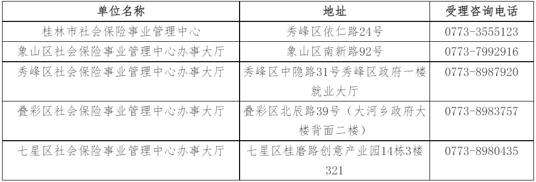 桂林市社保中心及各城区社保中心的地址电话