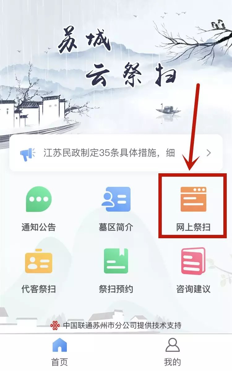 (1)完成注册后登录“云祭扫”平台点击“网上祭扫”