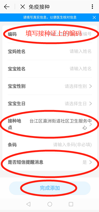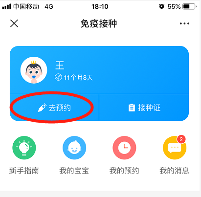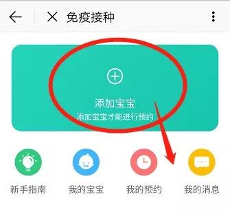 进入“免疫接种”后“添加宝宝”,完善宝宝信息后完成添加即可进入预约。