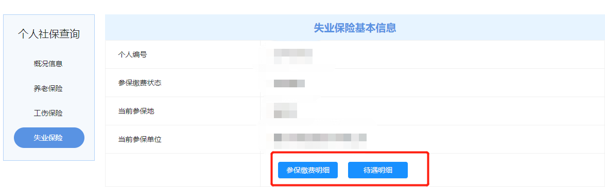 第三步:登录后会直接到达个人信息界面,选择要查询的险种—失业保险,点击“参保缴费明细”,即可查询到相关信息。